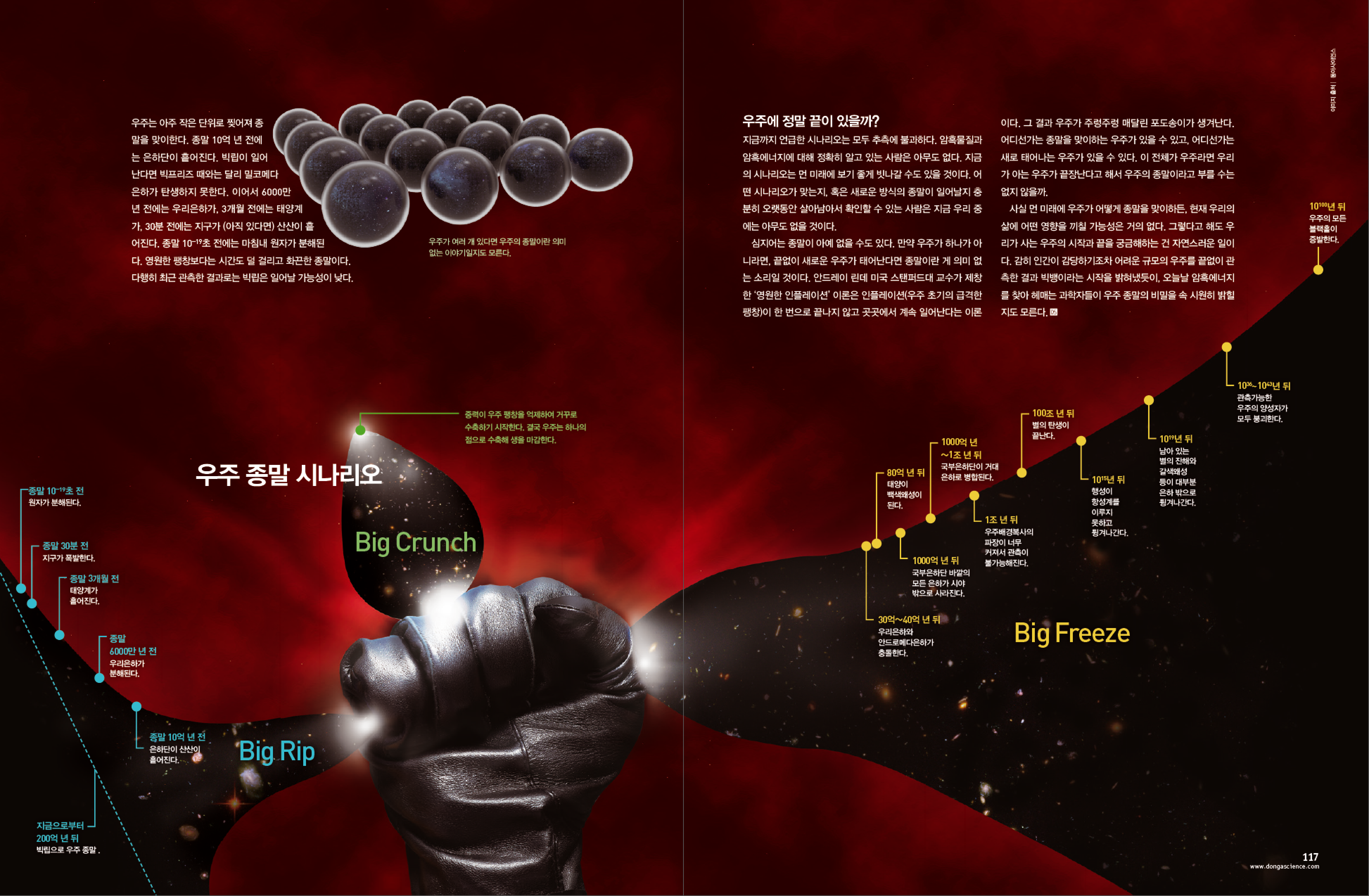 암흑에너지를 우주를 지배한다라고 표현하는 기사의 말에 아이디어를 얻어 검은손이 보이지 않는 곳을 움직인다는 콘셉트로 작업을 진행하였다. 직접 장갑을 끼고 스튜디오로 달려 나가 손 촬영을 끝낸 뒤 디자인 곳곳에 보이지 않는 손의 콘셉트를 녹아내려 노력하였다.