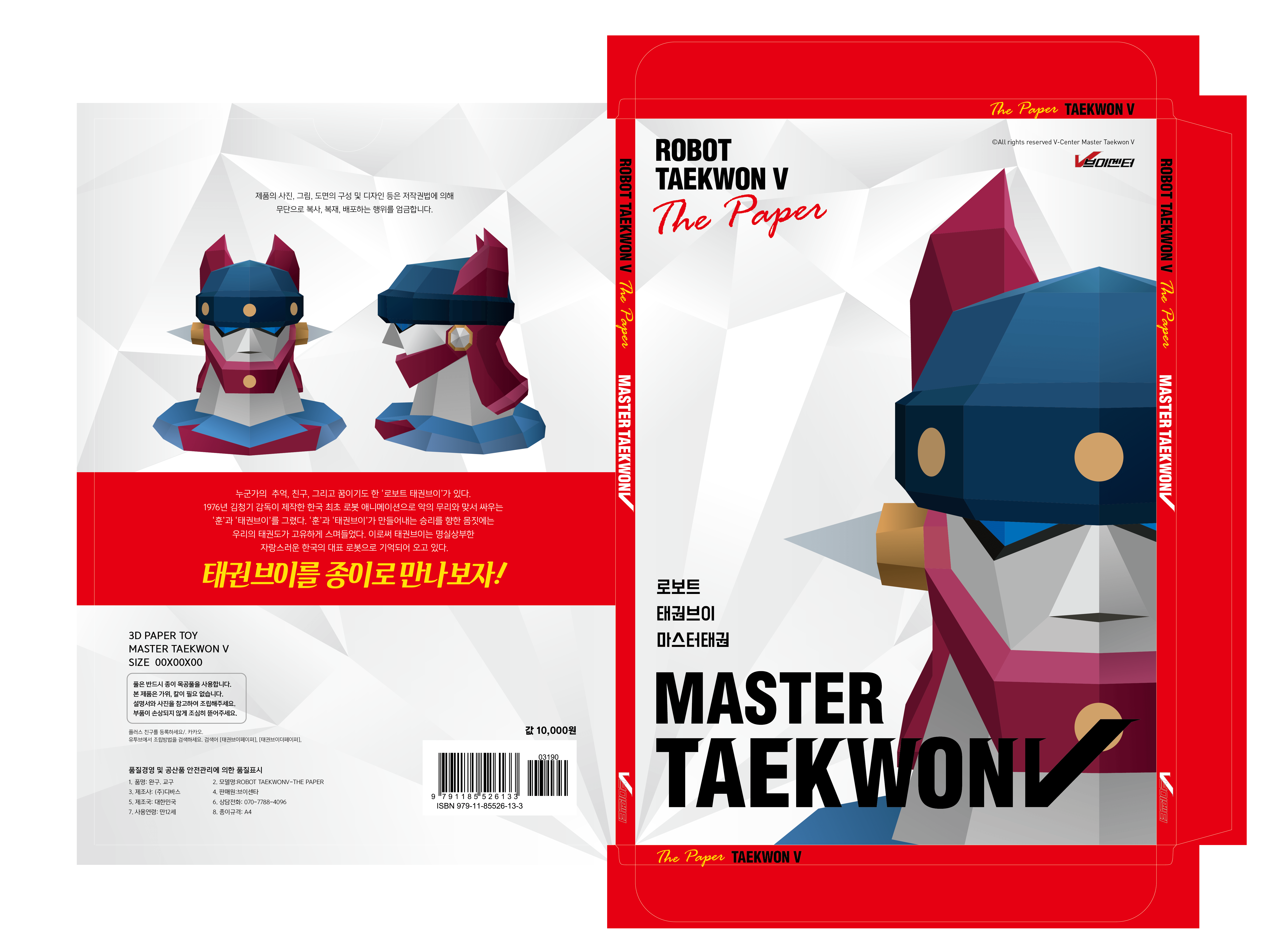 로봇태권브이를 종이접기로 만날 수 있는 패키징 디자인안입니다. 태권브이 일러스트 모두 직접 그렸습니다.